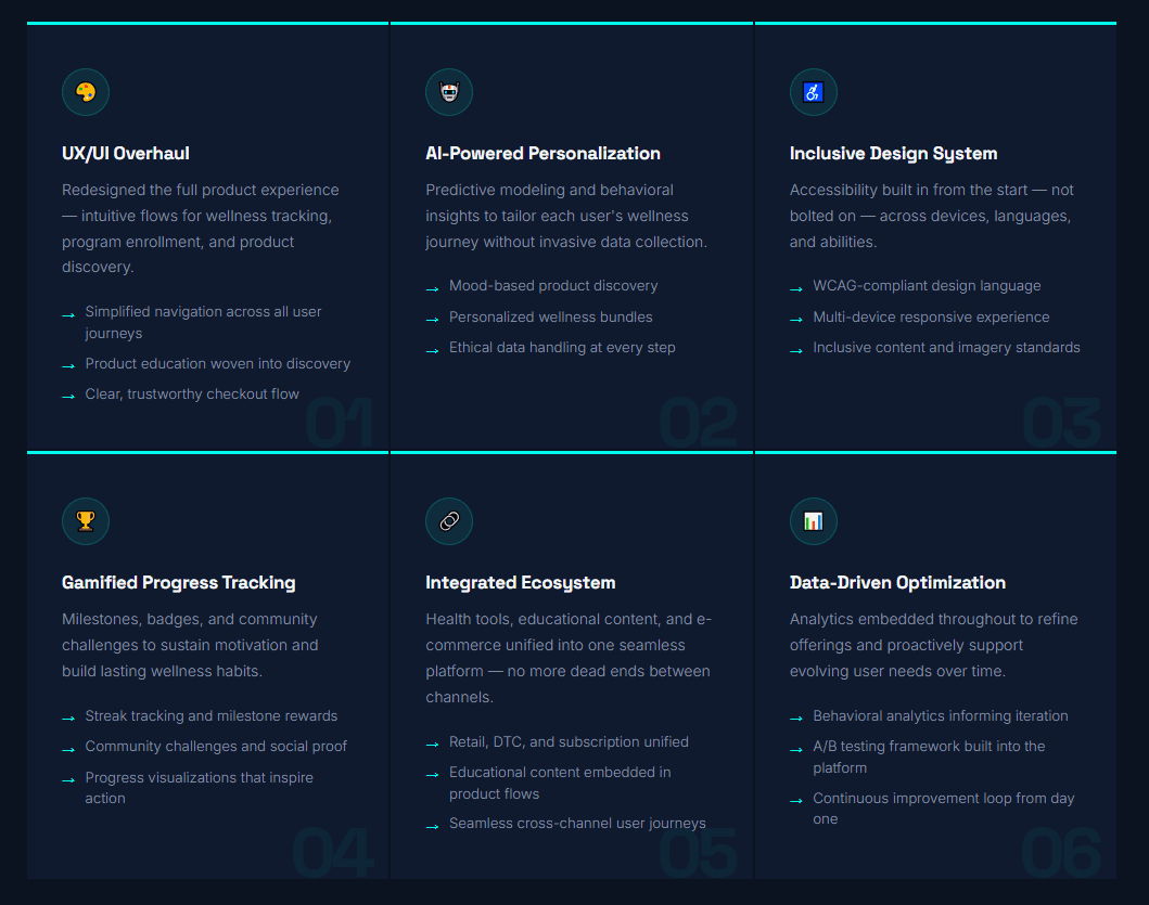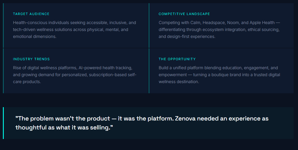 The Solution: A scalable, ethically grounded wellness platform, premium in feel, inclusive by design, and built to grow across every channel Zenova serves.