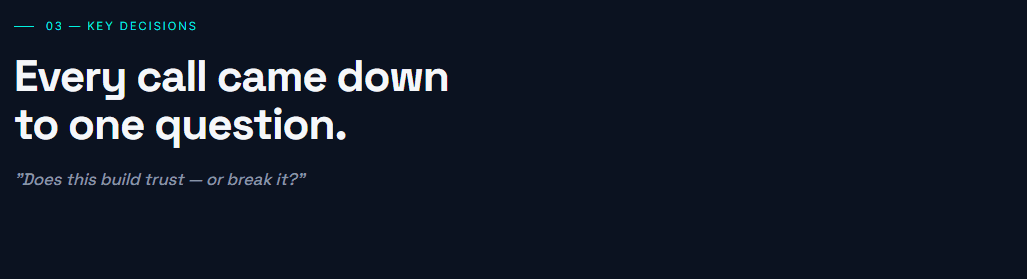 Key Decisions: Every major design call on Zenova came down to one question: does this build trust or break it?